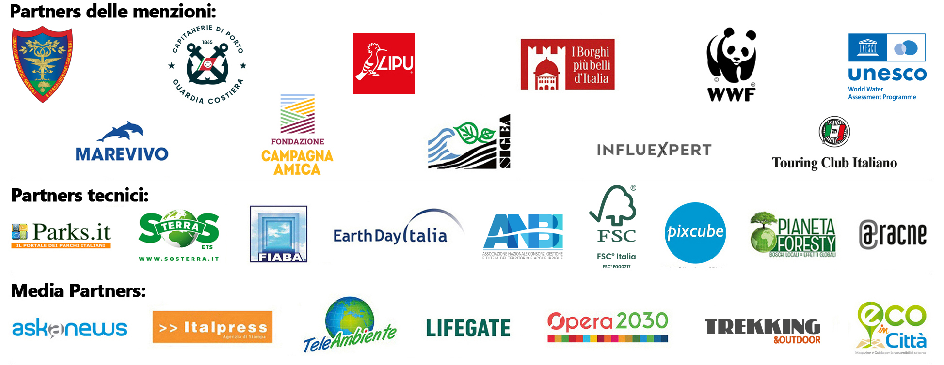 Media partners: Askanews, Italpress, TeleAmbiente, Lifegate, Opera2030, Trekking&Outdoor, Eco in Città.