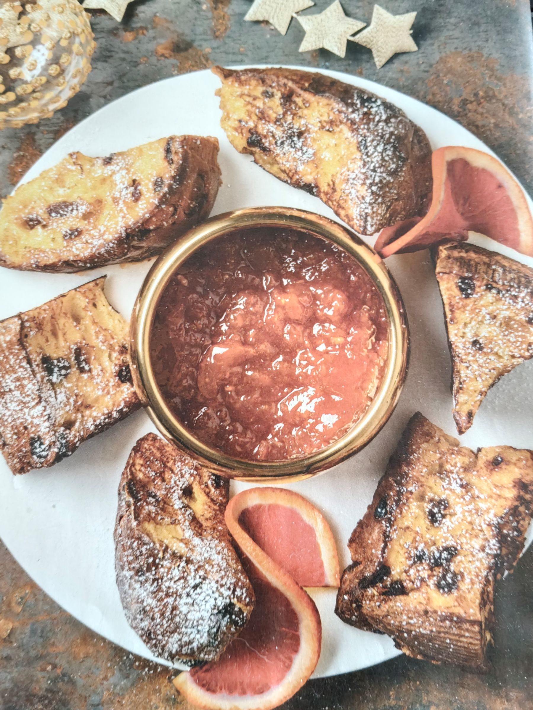 Servite il panettone perdu calda, spolverizzando con zucchero a velo o semolato, a piacere, accompagnandolo con la marmellata di arancia rossa.